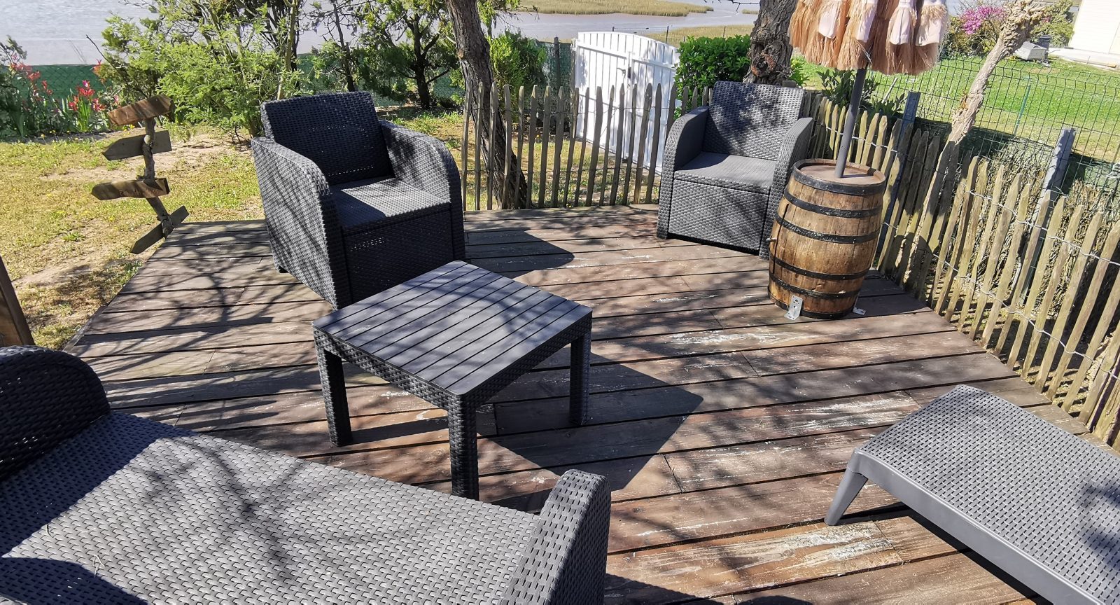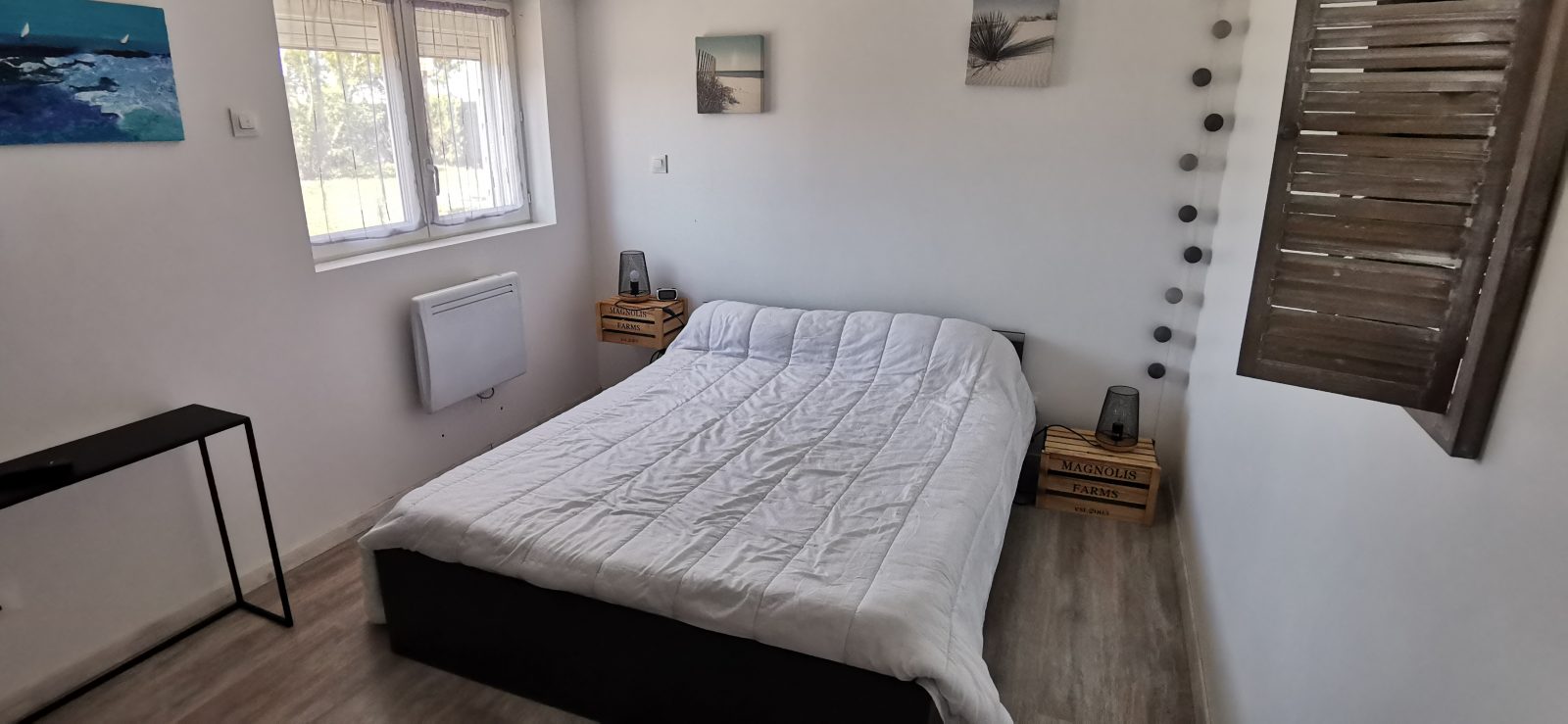 Huis gelegen chemin du Fort in l'Aiguillon sur Mer, voor 4 personen met uitzicht op de Lay, op een rustige locatie. Het bestaat uit een grote woonkamer met toegang tot het terras, ingerichte keukenhoek (oven, gasfornuis, magnetron, vaatwasser, broodrooster, waterkoker, enz.), 2 slaapkamers, elk met een tweepersoonsbed (140cm), kledingkast en flatscreen-tv, een doucheruimte met toilet en een berging met vriezer en wastafel. De mooi aangelegde tuin is perfect om van een zonnige vakantie te genieten. WIFI in het huis en airconditioning.