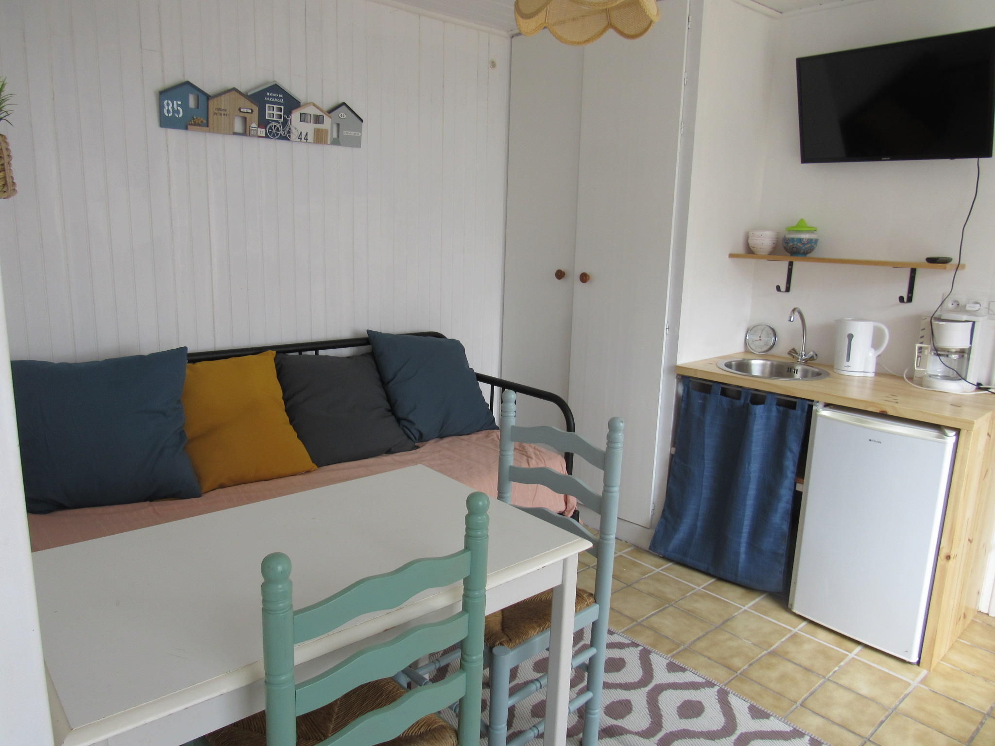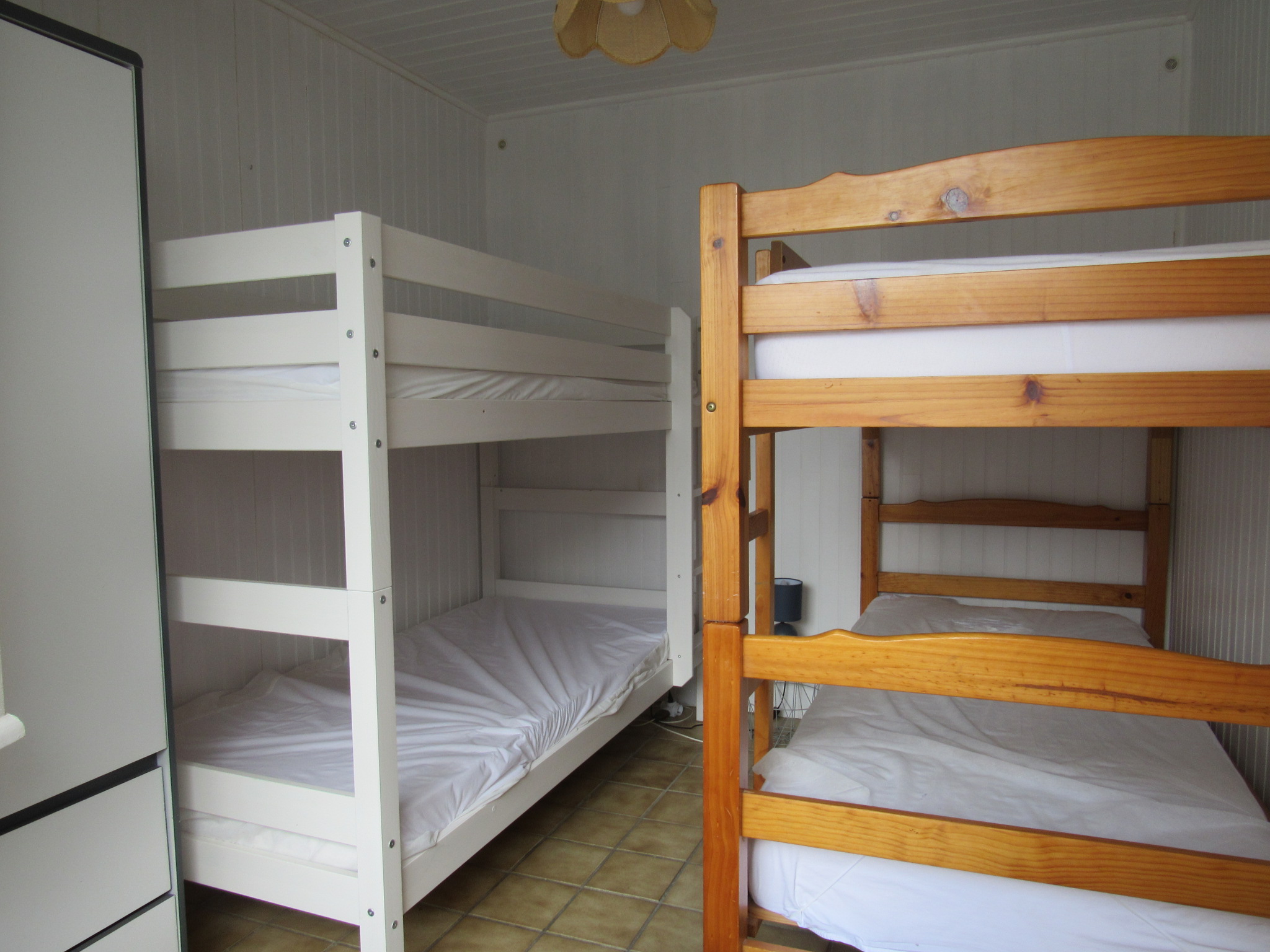 Ideaal gelegen in een rustige omgeving op 300 m van het strand van Belugas, bestaat deze accommodatie uit 2 woningen: 1/ hoofdwoning type 3 (ca. 60 m²) bestaande uit: inkomhal, ingerichte keuken, woonkamer met flatscreen TV, 1 slaapkamer met tweepersoonsbed (140cm), 1 slaapkamer met 2 stapelbedden (90cm), badkamer met douche, WC. 2/ woning type 3 (ca. 34 m²) bestaande uit: woonkamer (sofa 140cm) met kitchenette, slaapkamer met tweepersoonsbed (140cm), slaapkamer met 2 eenpersoonsbedden (90cm), kleine badkamer met douche en WC. Het huis heeft een mooi aangelegde binnenplaats, met parkeerplaats op de binnenplaats. Er is ook een kleine garage voor het stallen van fietsen en strandspullen.
