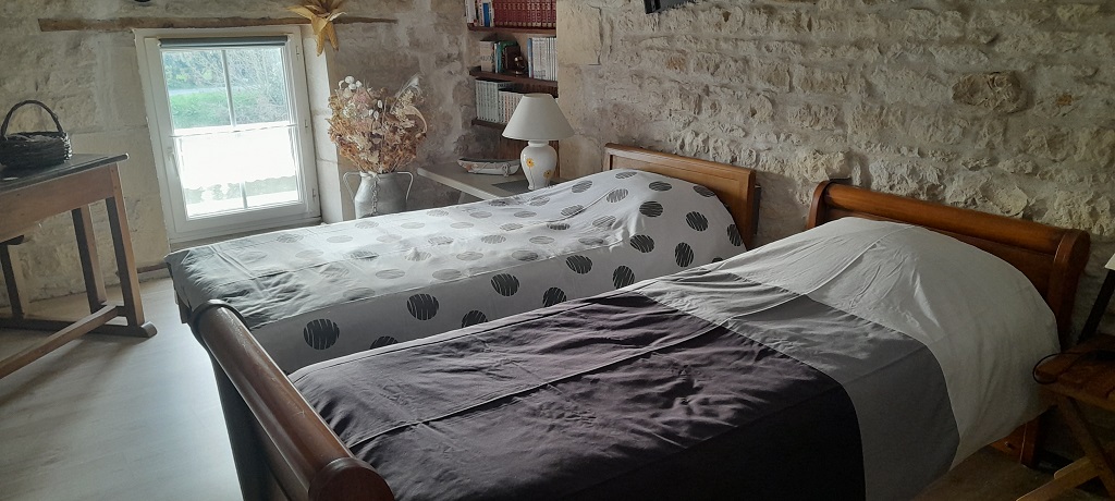 Gîte met lichtblauwe luiken, geklasseerd ***, gelegen aan de oever van de rivier "La Vendée", ideaal voor 2/4 personen (maar eventueel 5). Paradijs voor vissers: bekijk uw kurk vanaf het schaduwrijke terras (prieel, kruipwilg). VERHUUR VOOR ALLE PERIODES - EEN GOED CADEAU OM TE GEVEN -.