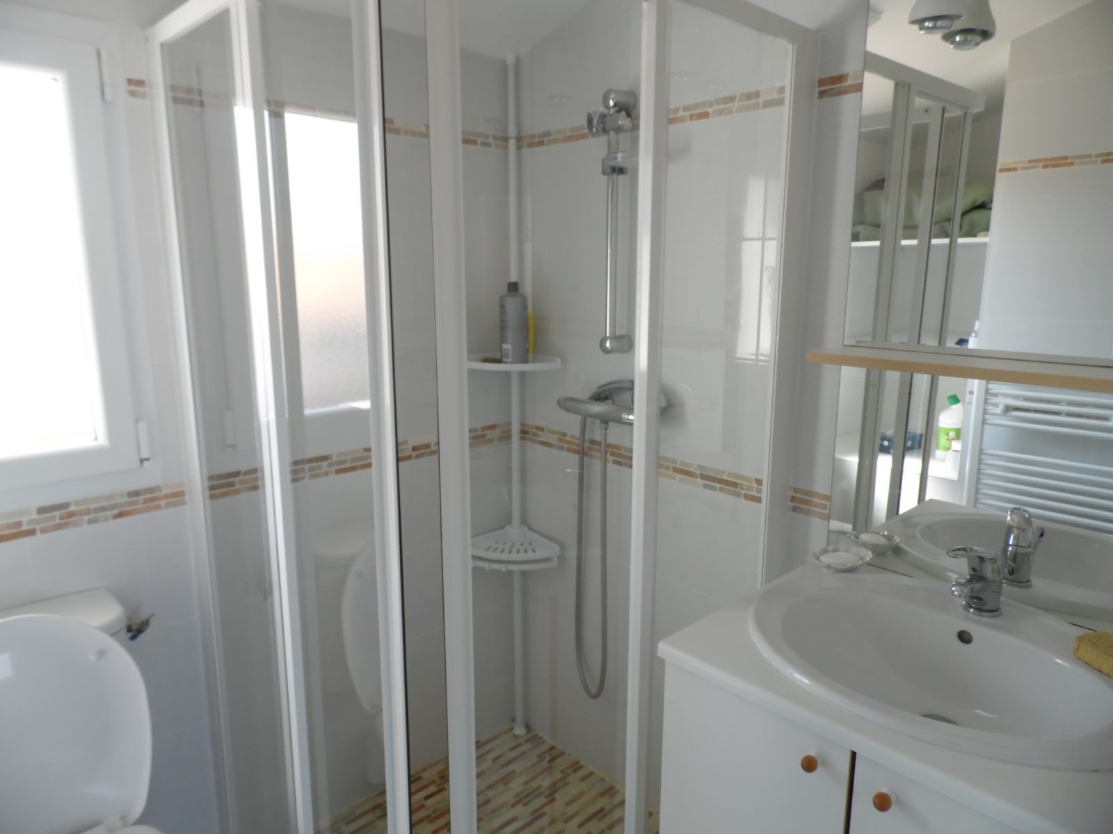 open keuken (gasfornuis-elektrische oven-koelkast/conservator) met vaatwasser, woonkamer met zithoek (televisie), twee slaapkamers met elk 1 tweepersoonsbed (140cm), derde slaapkamer met 2 eenpersoonsbedden (90cm), doucheruimte, aparte WC, berging met wasmachine die leidt naar de vierde slaapkamer met tweepersoonsbed (140cm) (televisie), doucheruimte met WC. Alles in een omheinde tuin met zonneterras. Huisdieren toegestaan