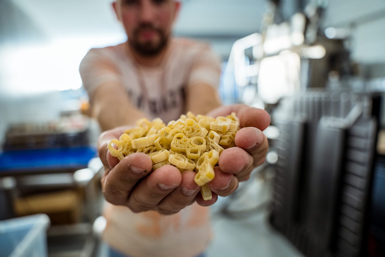 In de winkel vind je 7 verschillende pastavormen in verschillende smaken zoals inktvisinkt, tomaat of kerrie. Verpakt in verschillende formaten en ook in bulk.