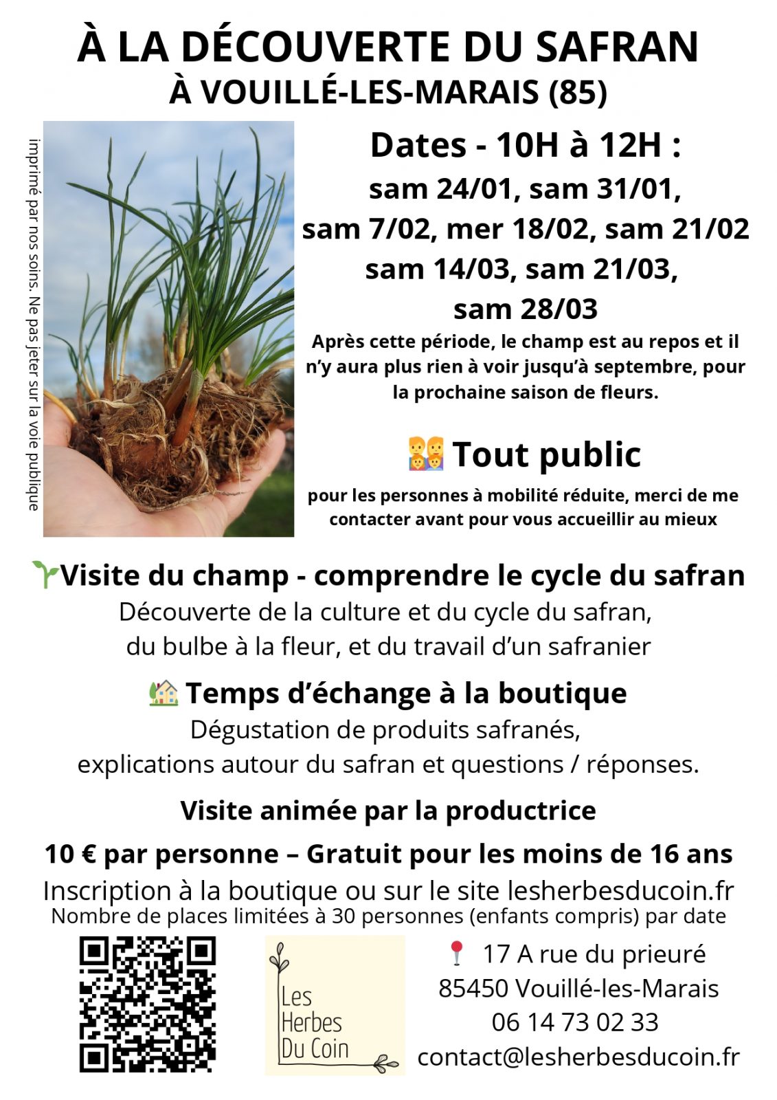 In aanloop naar het volgende bloeiseizoen nodigt Ingrid je uit om de teelt en de cyclus van saffraan te ontdekken, van bol tot bloem, en het werk van een saffraankweker. De rondleiding wordt gevolgd door een praatje in de winkel, inclusief een proeverij van saffraanproducten.