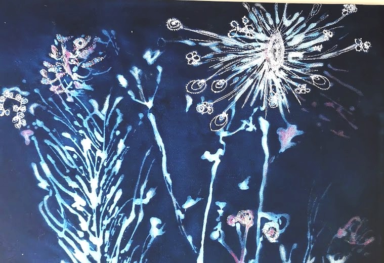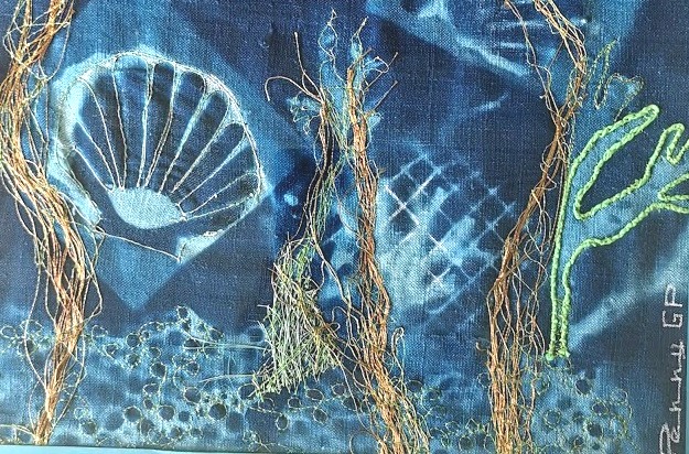 Als onderdeel van het Textielprogramma georganiseerd door de mediatheken Sud Vendée Littoral, exposeert kunstenaar Penny GP tot eind januari haar cyanotypes op stof en geborduurd canvas.
