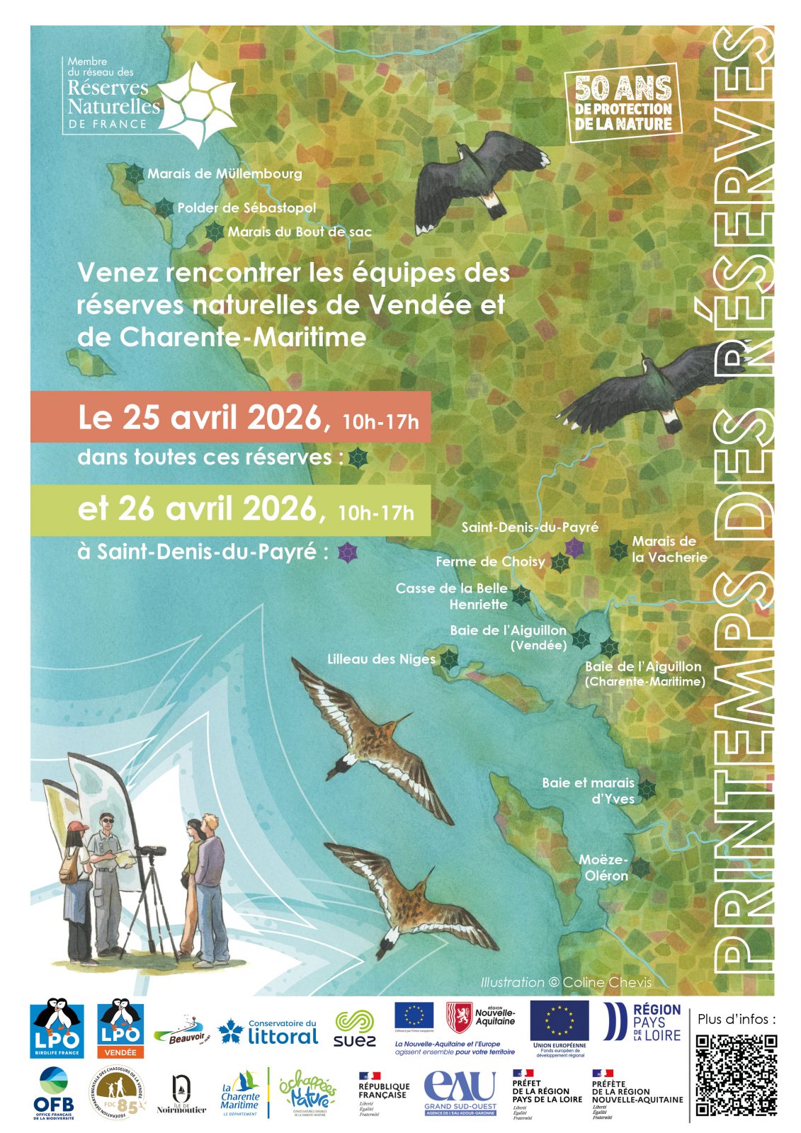 In alle natuurreservaten van de Vendée en Charente-Maritime kun je kennismaken met de teams die deze beschermde gebieden beheren, beschermen en onder de aandacht brengen. De hele dag door zullen conservatoren, animatoren en technische rangers aanwezig zijn om informatie en observatiepunten aan te bieden, evenals activiteiten voor het hele gezin.