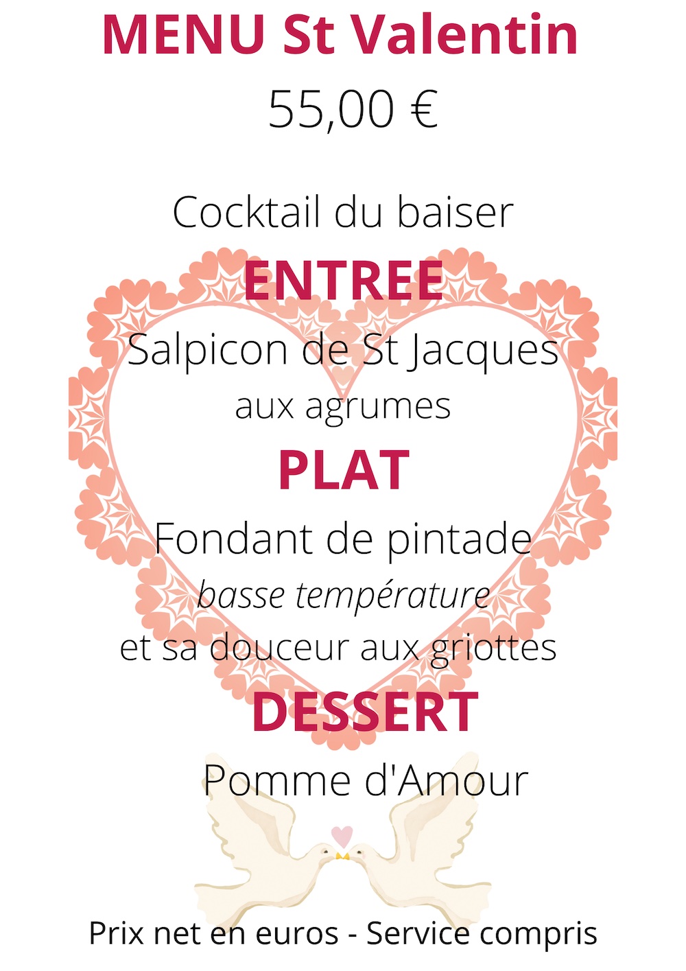 Het marktmenu en het menu de l'instant veranderen regelmatig, met gerechten rond aardappelen en gevogelte.