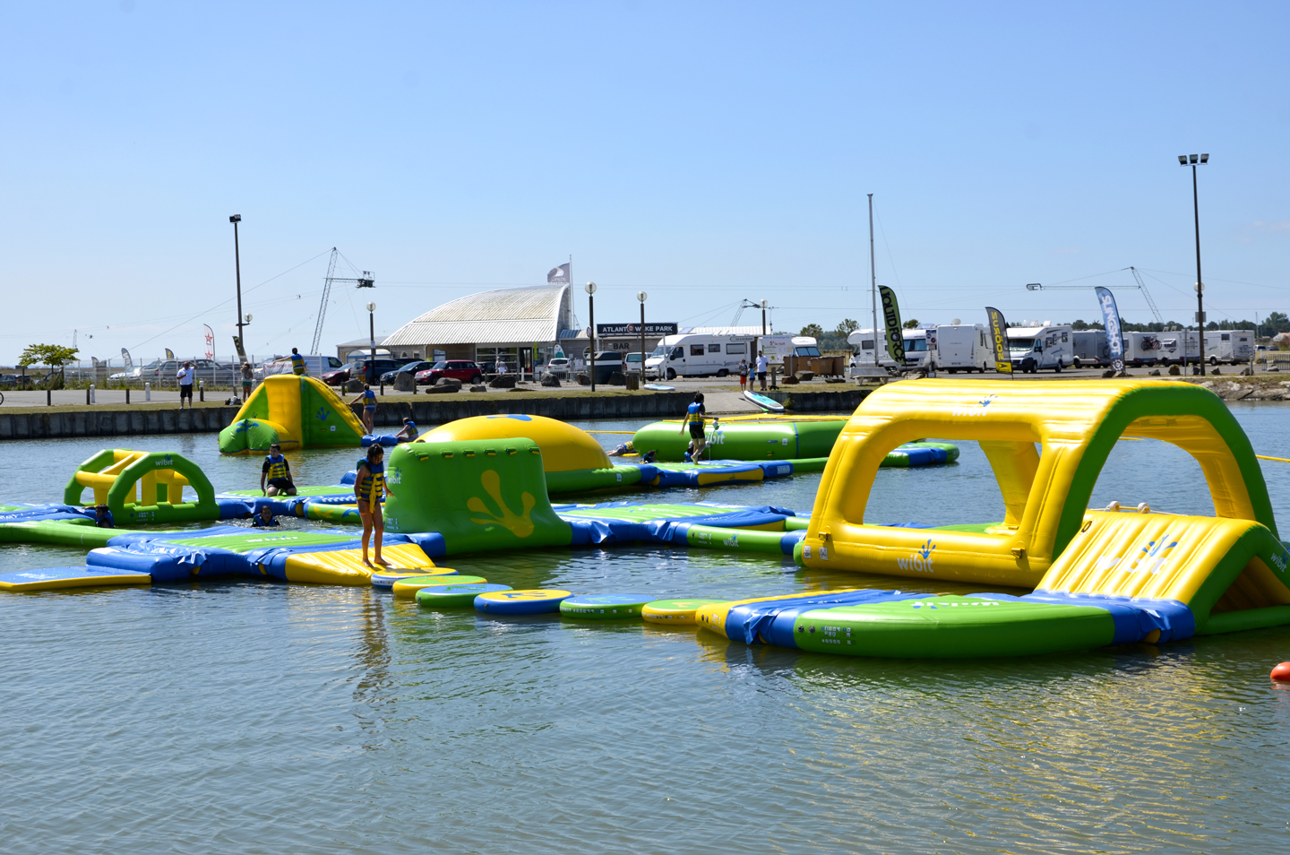 Op het meertje van L’Aiguillon-sur-Mer kunnen jong en oud genieten van een leuk waterparcours: de Splash Game. Trampolines, klimmuren, ronde stammen op een draaiende as, katapult airbags… lijkt het je wat? Het is een écht wipe-out parcours. Ga jij de uitdaging aan? Geniet van waterplezier met gezin of vrienden!